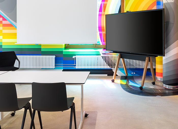 Die Raumeinrichtung muss zur Größe des Raumes passen. Dies gilt für die Meetingtische, und Bestuhlung, als auch für die Monitore. Der klassische Besprechungsraum sollte einladend eingerichtet sein.