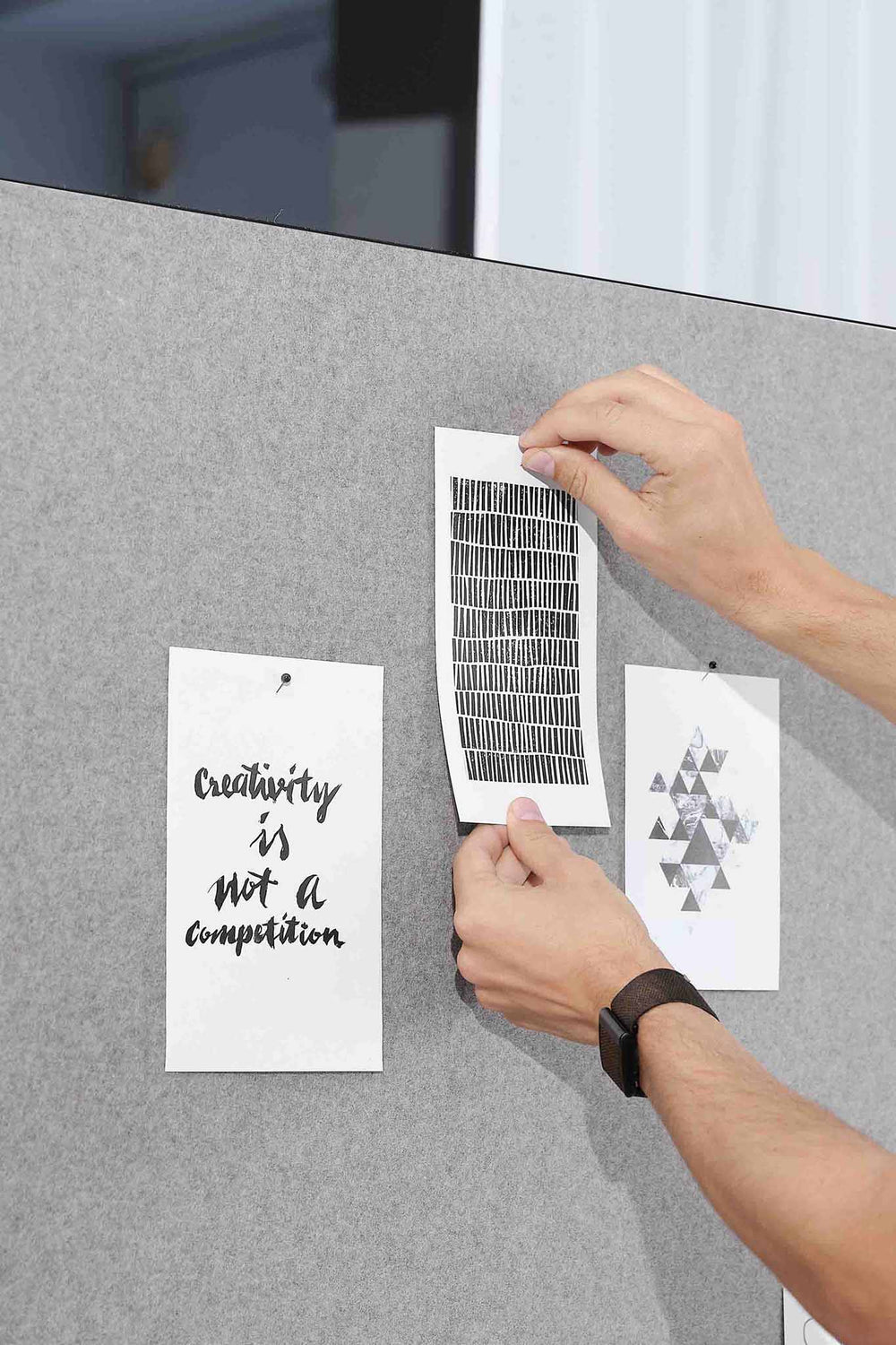 Recueillez l'inspiration, enregistrez les résultats, développez des stratégies et présentez-les. Individuellement ou en groupe. Les différents processus de travail nécessitent des outils polyvalents. Nos multiboards flexibles ont de nombreux talents.Épingle ou tableau magnétique, tableau blanc ou tableau de modération. Grâce au Roulettes, ils sont toujours là où on en a besoin.